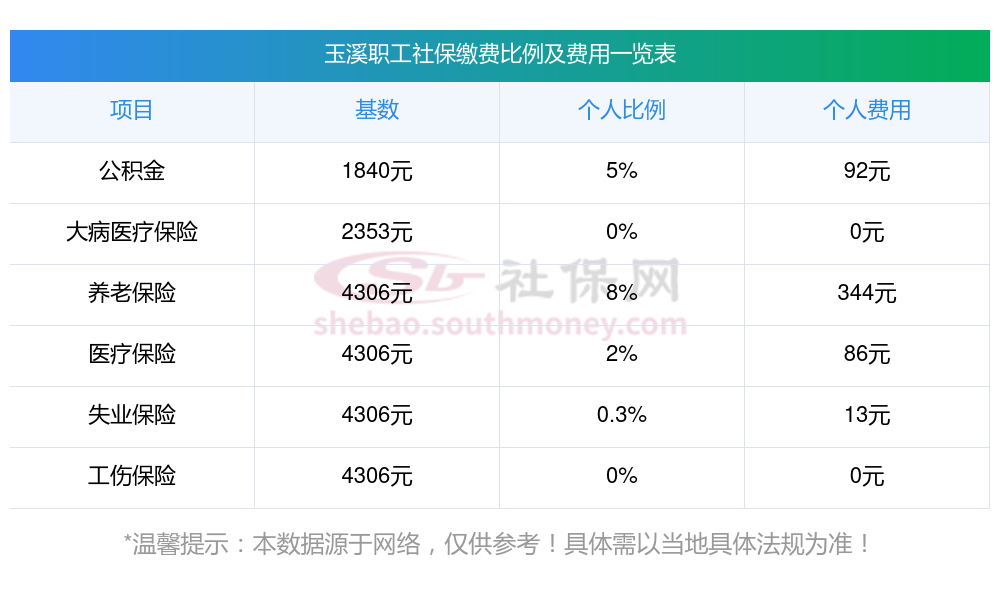 2024年玉溪社保缴费多少钱?下表是2023-2024年玉溪社保费用明细参考,新社通app-社保缴费查询工具提供的最新数据如下: