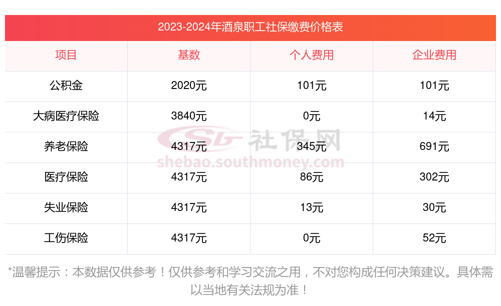 社保缴纳比例一览,社保公司和个人各交多少?下表是2023-2024年酒泉社保费用明细参考,新社通app-社保缴费查询工具提供的最新数据如下:
