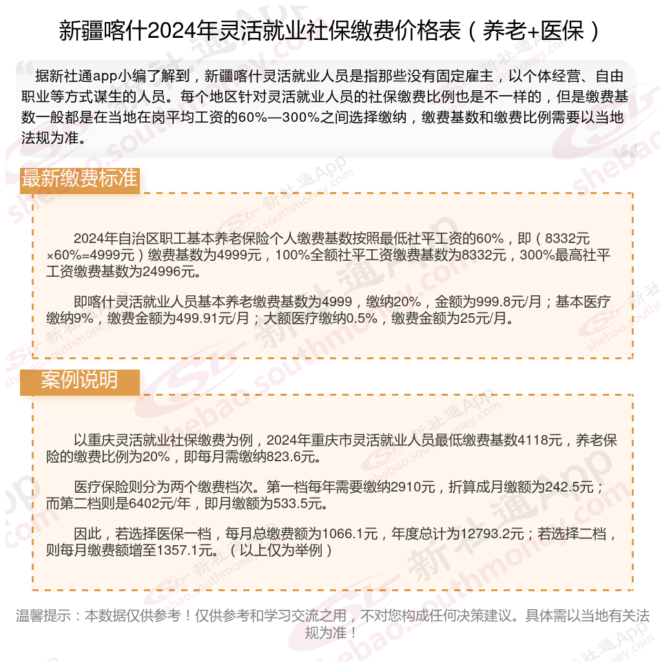二、2024年新疆喀什灵活就业社保缴费标准表 新疆喀什灵活就业社保多少钱一个月?