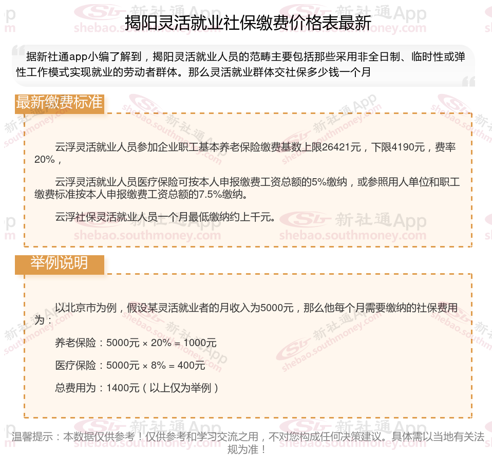 以上就是揭阳灵活就业社保缴费的全部内容,数据及内容供参考!希望对你有帮助,欢迎关注新社通解锁更多社保专业资讯。