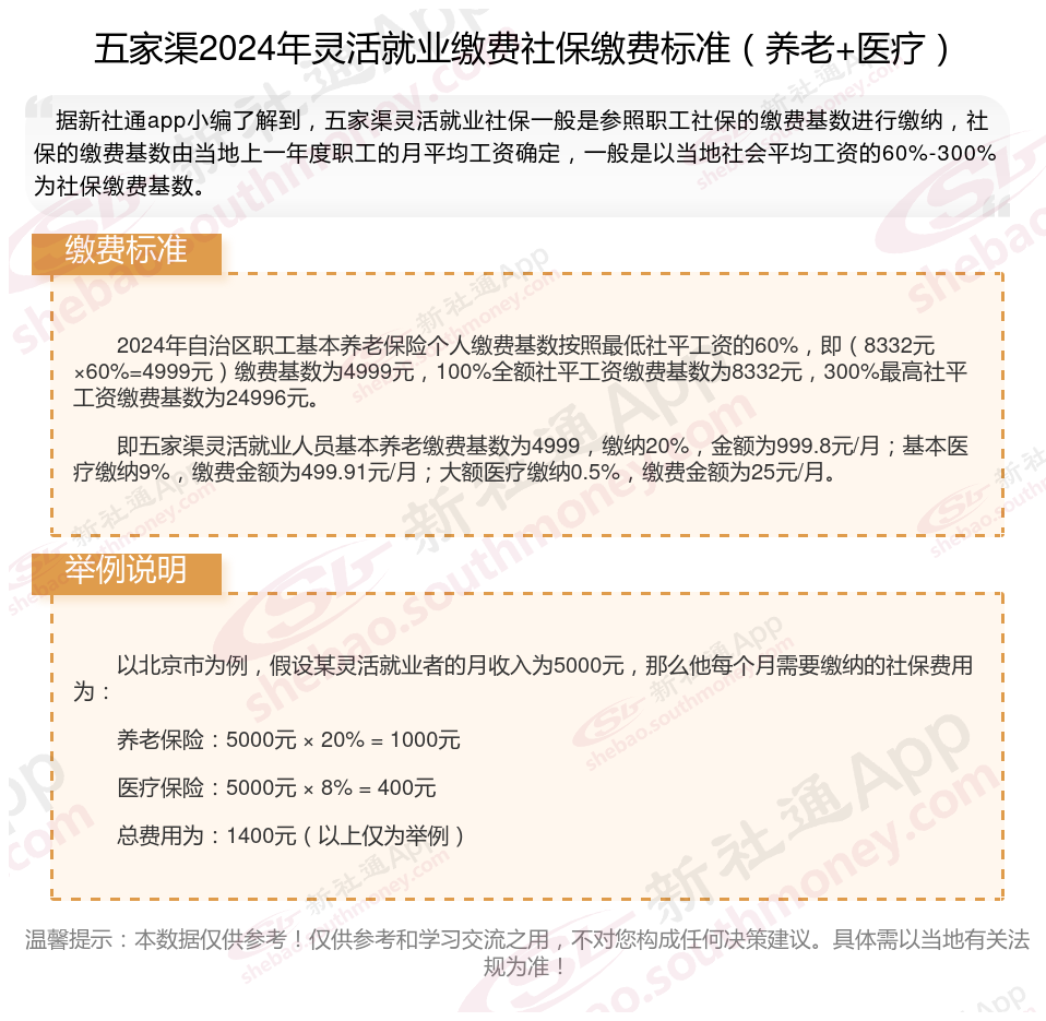 二、五家渠2024年灵活就业社保缴费基数及比例最新消息
