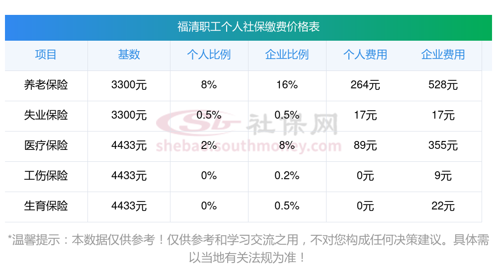 二、福清职工社保缴费基数是多少钱一个月?职工社保缴纳标准是多少?
