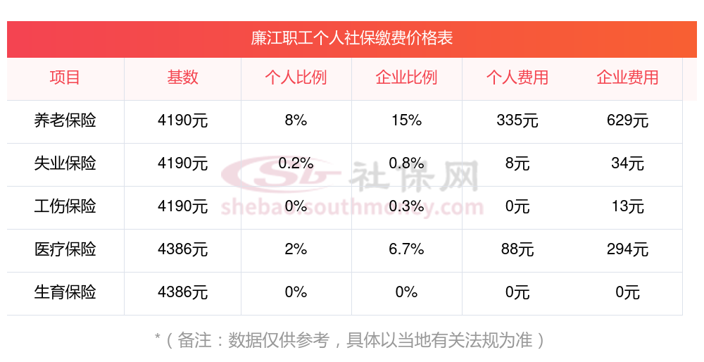 一、廉江职工社保缴费基数是多少钱一个月?职工社保缴纳标准是多少?
