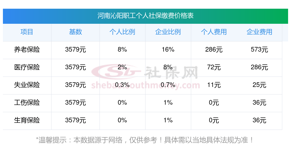 据新社通app小编了解,2023-2024年河南沁阳社保缴费基数参照为3579.00,河南沁阳社保最低一个月要交多少钱?如下: