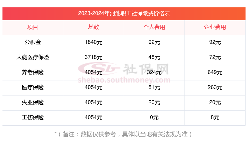 2025年河池社保缴费多少钱?下表是2024-2025年河池社保费用明细参考,新社通app-社保缴费查询工具提供的最新数据如下: