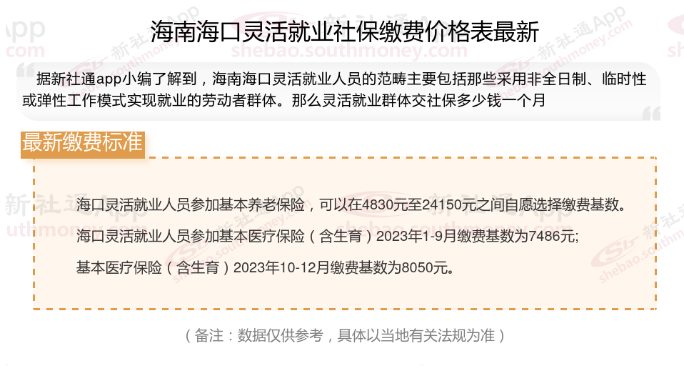 对于灵活就业者来说,社保缴纳是一个非常重要的问题。那么,2024年海南海口灵活就业社保怎么交?一个月要交多少呢?领取待遇如何计算的?接下来随新社通APP小编一起了解海南海口灵活就业社保缴费具体详情吧。