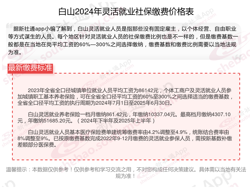 二、白山2024年灵活就业社保缴费基数及比例最新消息