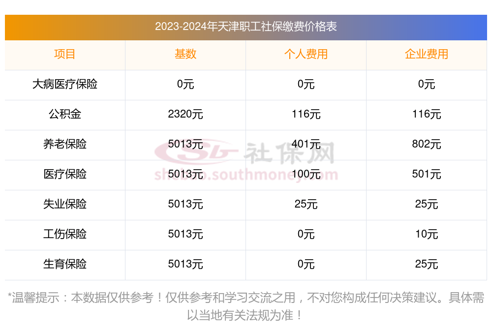 据新社通app小编了解到,2023-2024年天津社保缴费基数参照为3579.00,天津社保缴费明细如下: