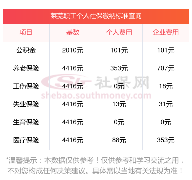 据新社通app显示,莱芜社保缴费基数2023-2024年最新标准如下: