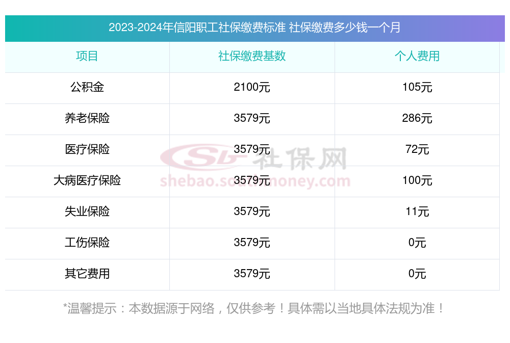 信阳五险一金交多少钱一个月?下表是2024-2025年信阳社保费用明细参考,新社通app-社保缴费查询工具提供的最新数据如下: