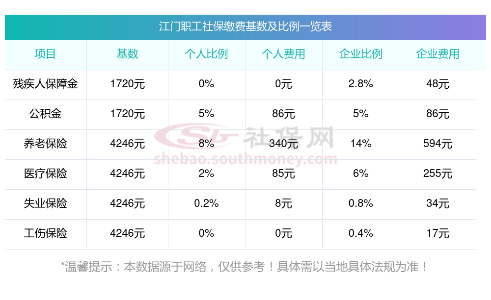 江门的社保缴费情况,依据2025年最新的缴费标准,我们可以详细地进行如下说明。这些标准是根据新社通app-社保缴费查询工具提供的数据整理得出的: