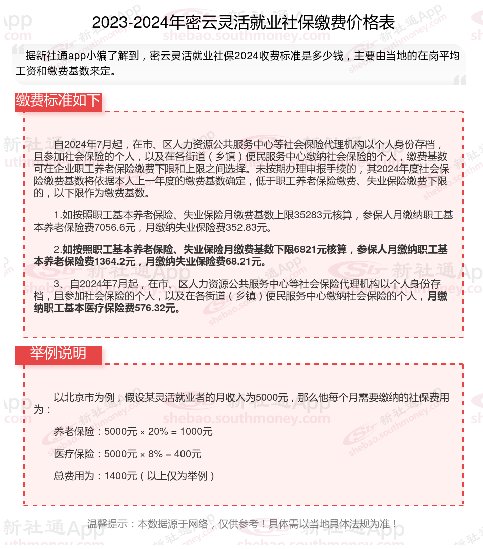 一、2024年密云灵活就业社保缴费标准表 密云灵活就业社保多少钱一个月?