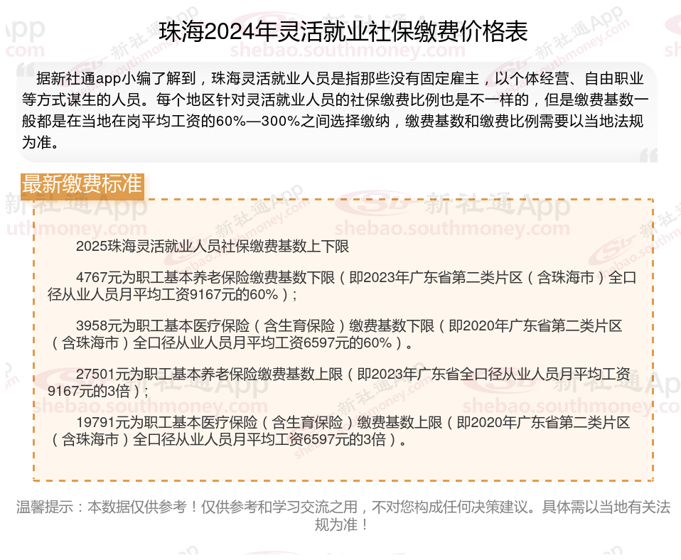 二、珠海2024年灵活就业社保缴费基数及比例最新消息