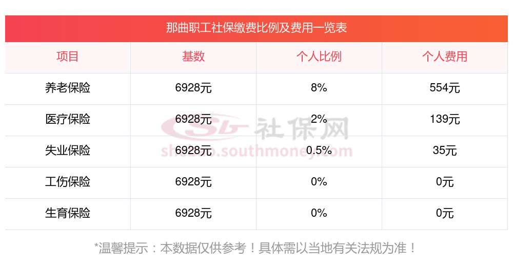 西藏那曲缴费社保比例一览 社保公司和个人各交多少?下表是2024-2025年西藏那曲社保费用明细参考,新社通app-社保缴费查询工具提供的最新数据如下:
