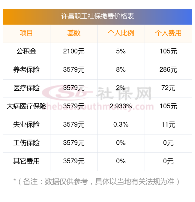 2025年许昌社保缴费多少钱?下表是2023-2024年许昌社保费用明细参考,新社通app-社保缴费查询工具提供的最新数据如下: