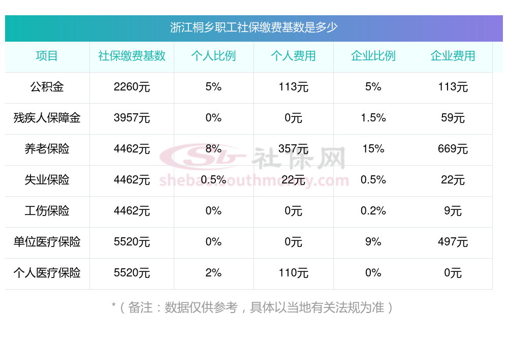 据新社通app小编了解到,2023-2024年浙江桐乡社保缴费基数参照为3579.00,浙江桐乡社保缴费明细如下: