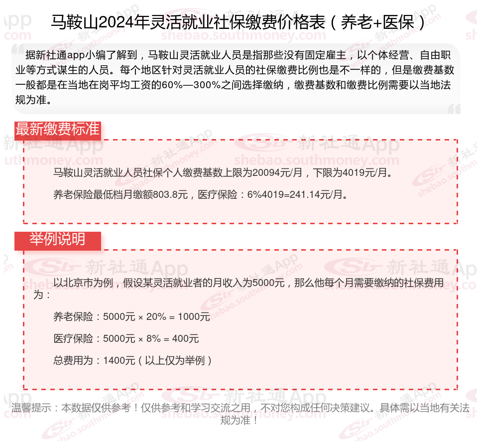 随着经济的发展和社会的进步,灵活就业人员越来越多,但是很多人不知道如何缴纳社保。本文将介绍2024年马鞍山灵活就业人员社保缴费基数及如何缴纳社保,能领取多少钱,帮助大家更好地了解灵活就业社保,随着新社通APP小编一起了解马鞍山灵活就业社保缴费最新资讯吧。