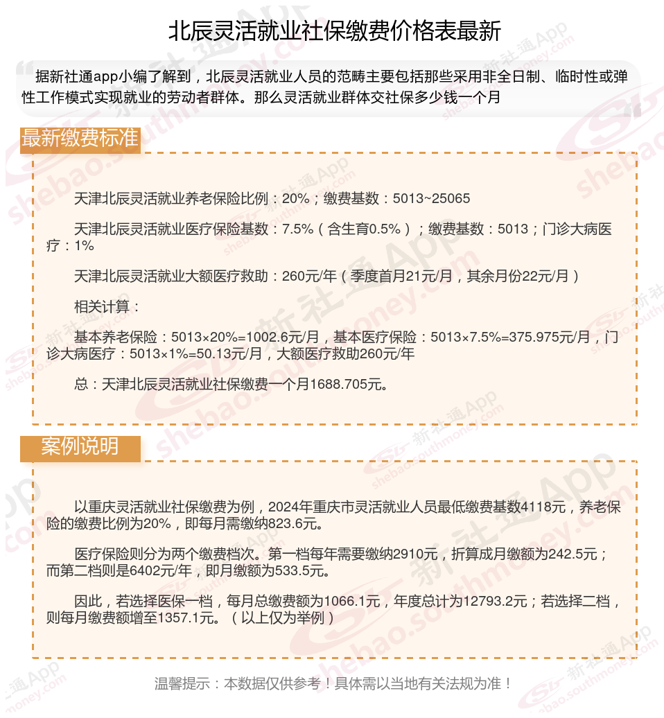 以上就是北辰灵活就业社保缴费的全部内容,数据及内容供参考!希望对你有帮助,欢迎关注新社通解锁更多社保专业资讯。