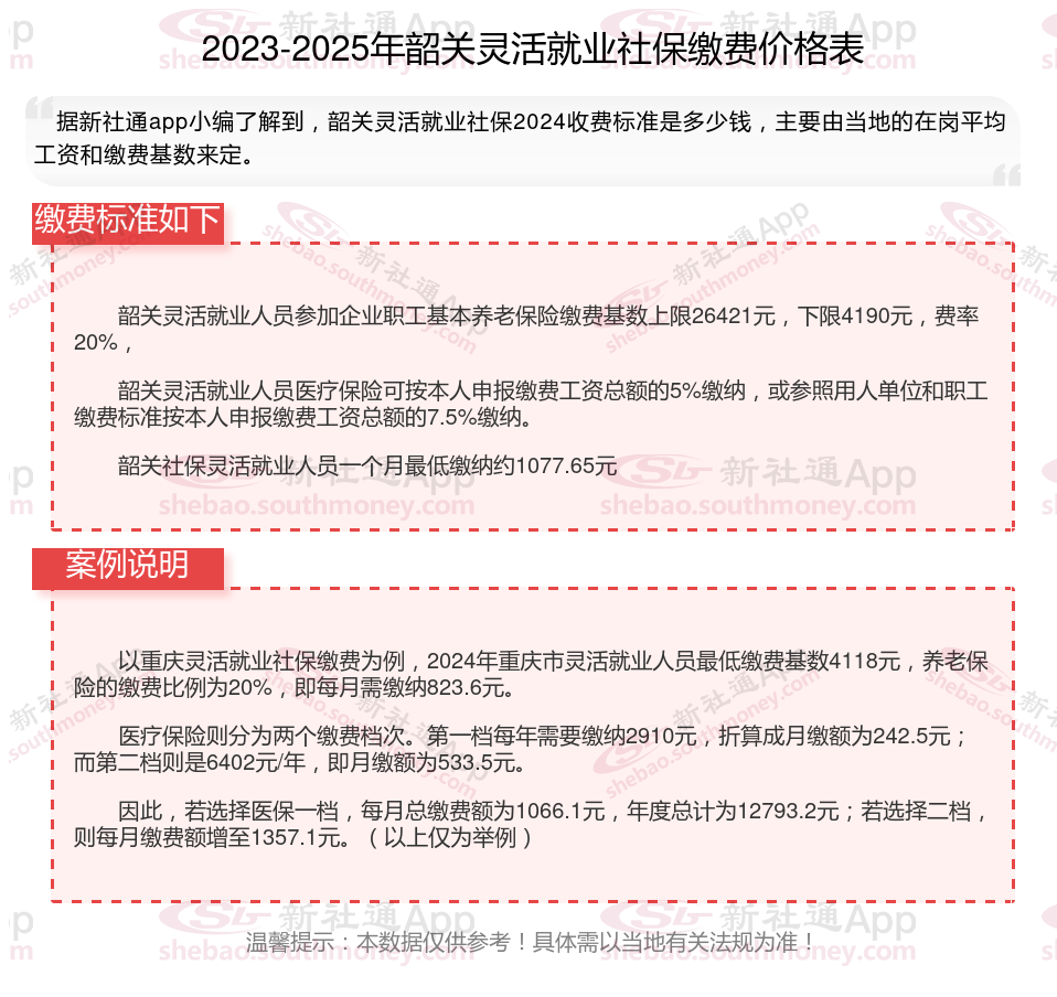 二、韶关2024-2025年灵活就业社保缴费基数、比例最新消息