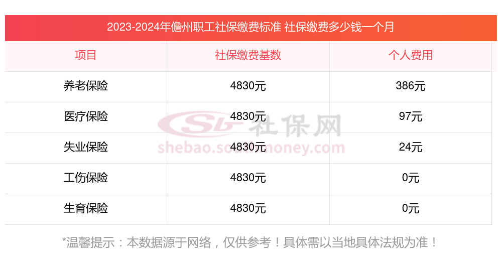 2025年儋州社保缴费多少钱?下表是2024-2025年儋州社保费用明细参考,新社通app-社保缴费查询工具提供的最新数据如下: