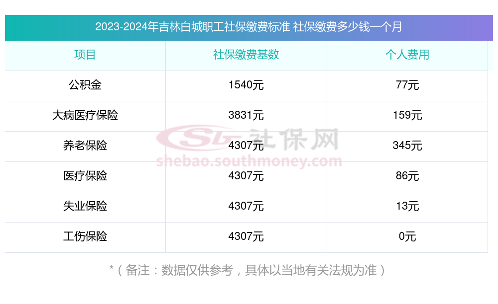 吉林白城职工社保缴费多少钱一个月?