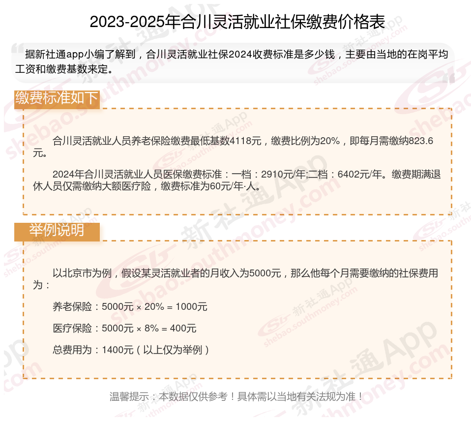 以上就是带来合川灵活就业社保缴费标准相关知识,内容及数据仅供参考,希望对你有帮助,欢迎关注/下载新社通app解锁更多社保专业资讯。
