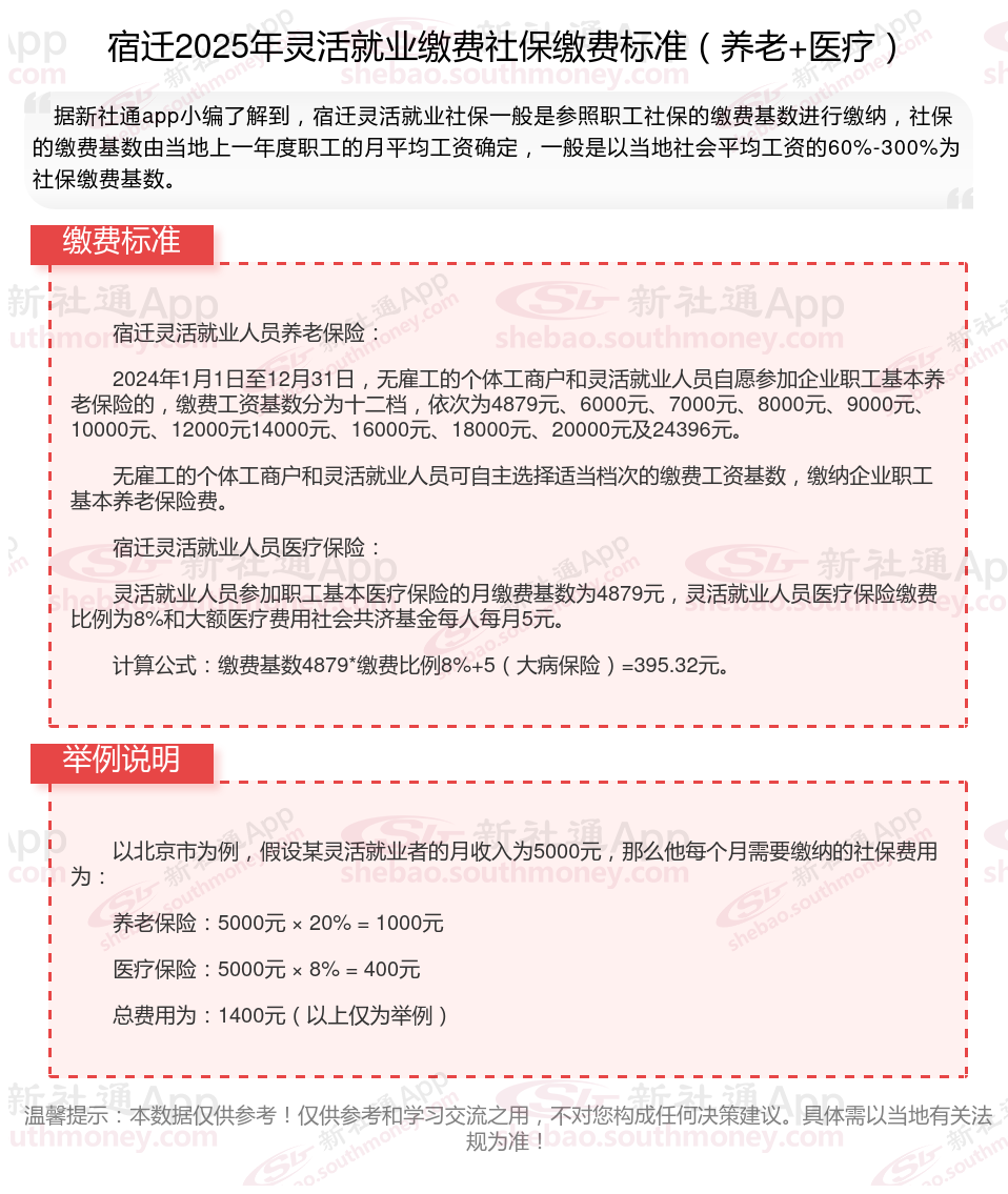 一、宿迁2024-2025年个体及灵活就业人员社保养老保险缴费标准(宿迁自费社保价格表)