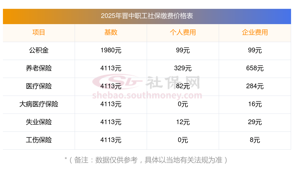 职员五险一个月交多少钱 公司加个人是多少?下表是2024-2025年晋中社保费用明细参考,新社通app-社保缴费查询工具提供的最新数据如下:
