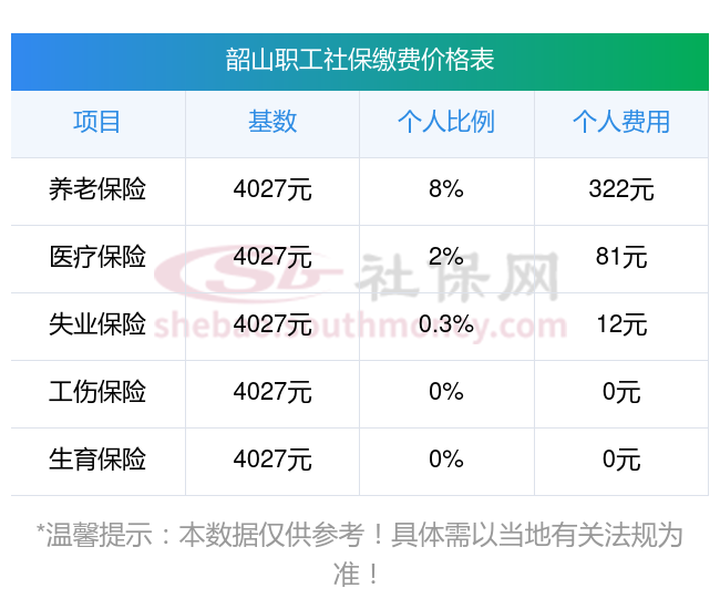 据新社通app小编了解到,2025年韶山社保缴费基数参照为3579.00,韶山社保缴费明细如下: