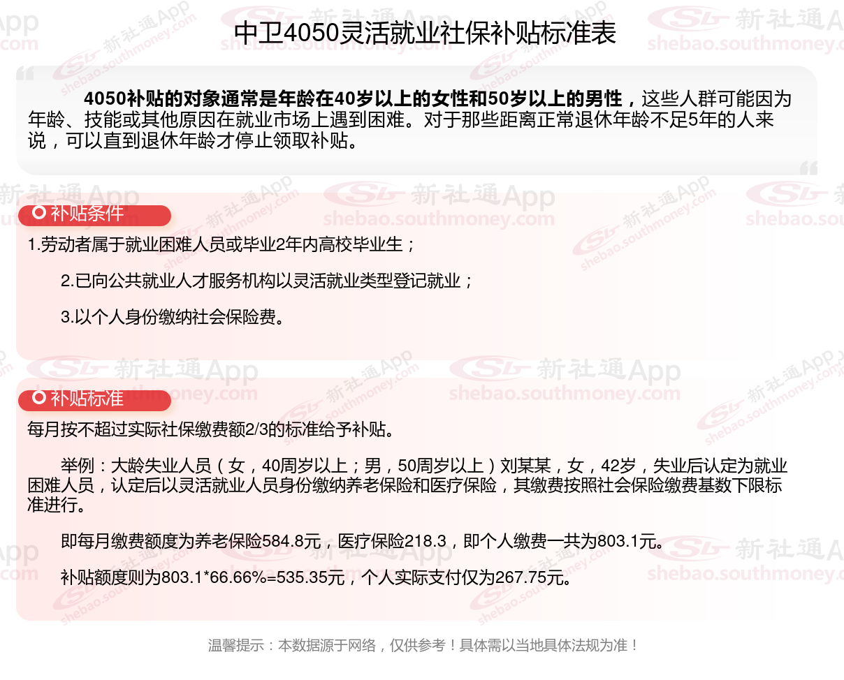 以上就是中卫4050灵活就业社保补贴的相关内容,欢迎关注新社通/下载新社通APP了解更多五险一金专业资讯。
