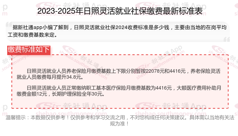 2025日照灵活就业社保缴纳基数是多少?日照灵活就业人员社保交15年领多少?根据新社通app-社保缴费查询工具提供的2025社保缴费标准详情数据: