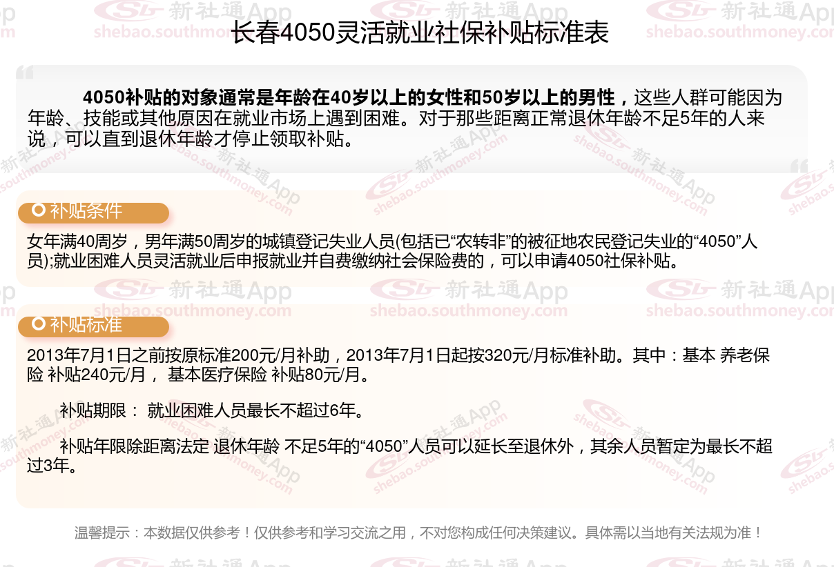 一、2025年长春灵活就业4050社保补贴标准及条件是什么