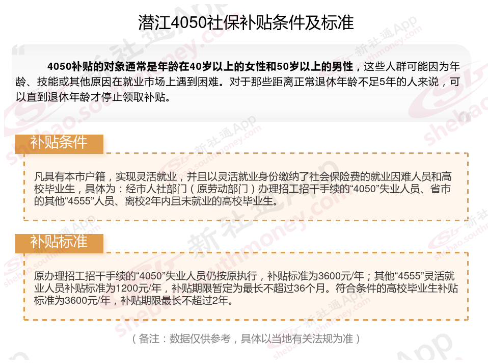 2025潜江灵活就业4050社保补贴是一项面向特定年龄段的就业困难人群的社会保险补贴。