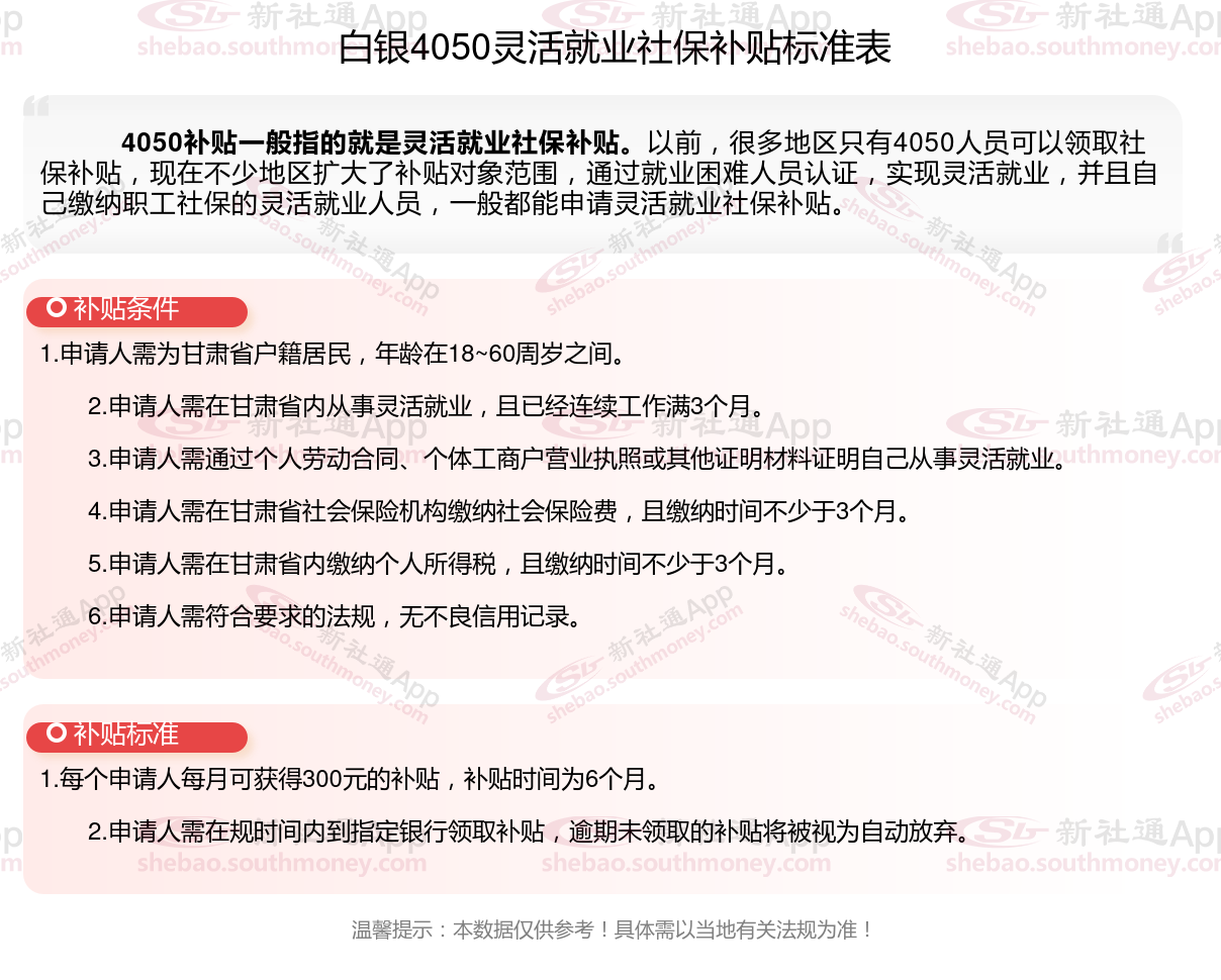 一、2025年白银4050社保补贴新规2025年白银4050社保补贴标准是什么,需要什么条件?