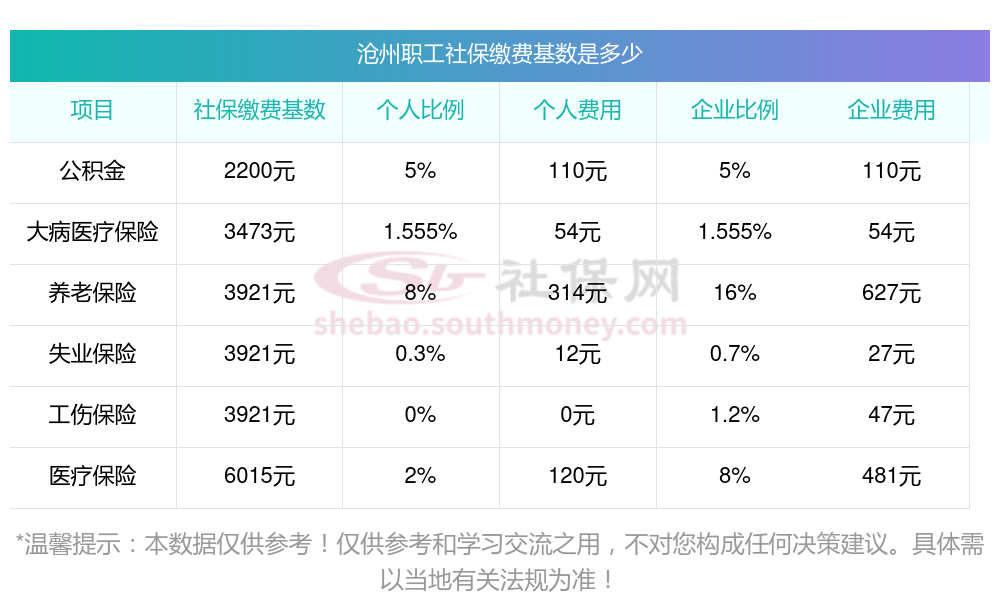 沧州社保各基数的缴费比例是多少?和社保小编一起来看看,新社通app-社保缴费查询工具提供的最新数据如下: