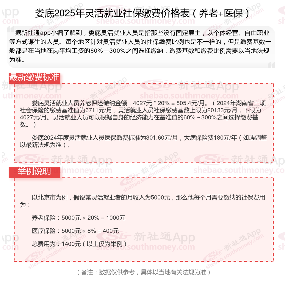 以上就是娄底灵活就业社保缴费的全部内容,数据及内容供参考!希望对你有帮助,欢迎关注新社通app解锁更多社保专业资讯。