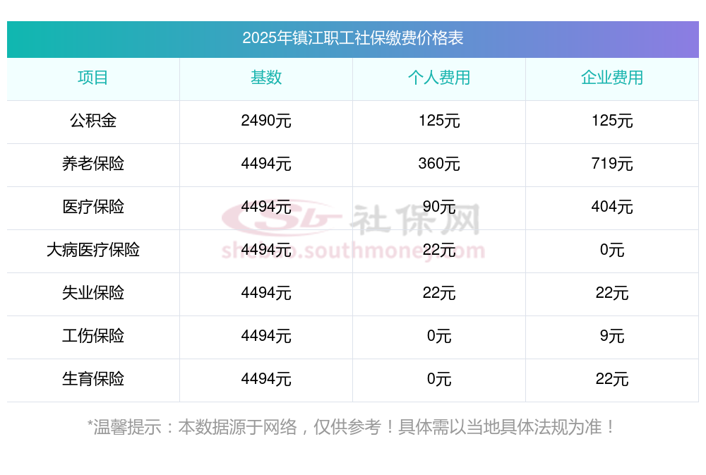 据新社通app小编了解到,2025年镇江社保缴费基数参照为3579.00,镇江社保缴费明细如下: