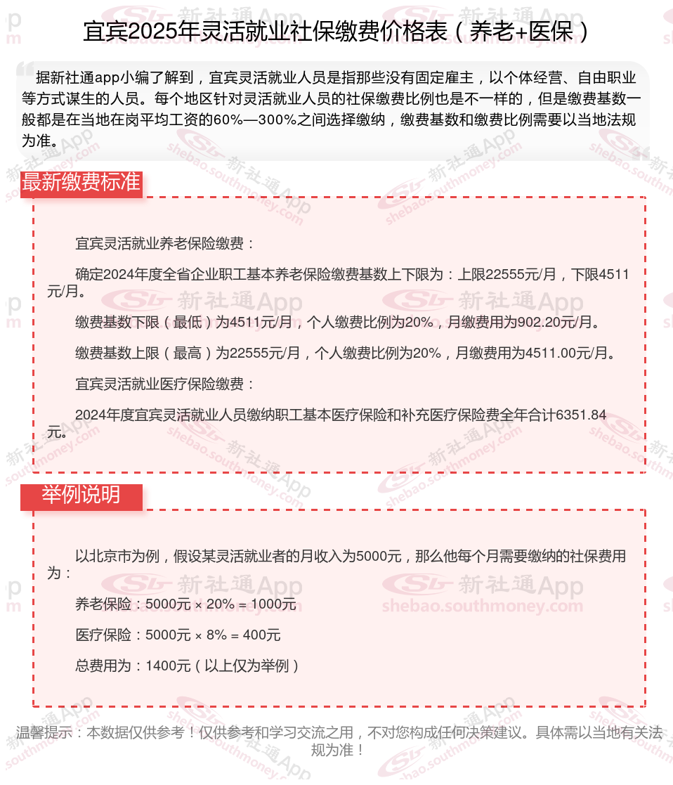 一、宜宾2024-2025年个体及灵活就业人员社保养老保险缴费标准(宜宾自费社保价格表)