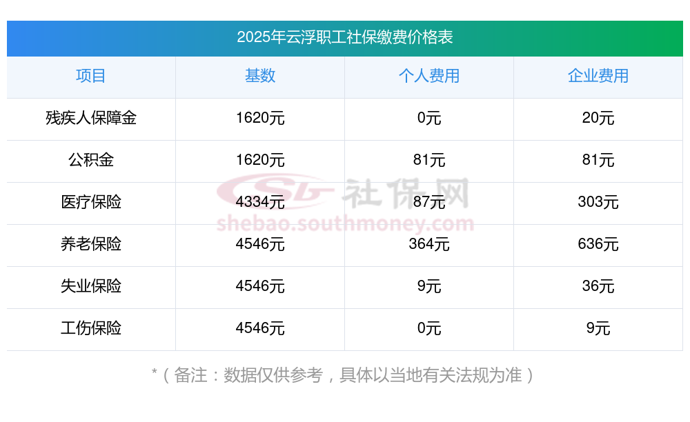 2025年云浮社保缴费最新标准是多少?新社通app-社保缴费查询工具提供的最新数据如下: