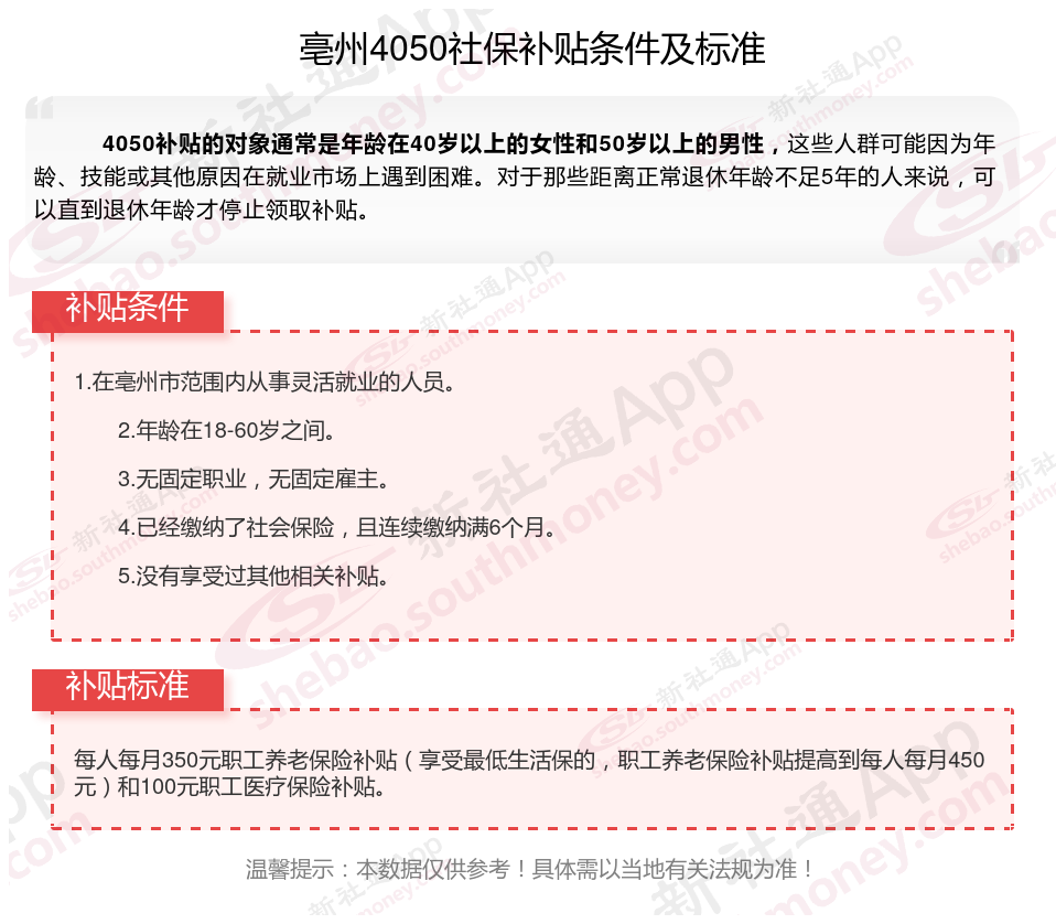 2025亳州4050补贴主要针对的是年龄在40岁以上的女性和50岁以上的男性,这些人群通常因为年龄较大而面临就业困难。