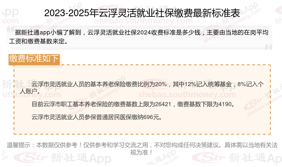 以上就是云浮灵活就业社保缴费的全部内容,数据及内容供参考!希望对你有帮助,欢迎关注新社通解锁更多社保专业资讯。