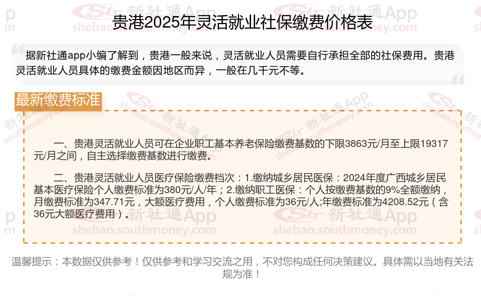 以上就是带来贵港灵活就业社保缴费标准相关知识,内容及数据仅供参考,希望对你有帮助,欢迎关注/下载新社通app解锁更多社保专业资讯。