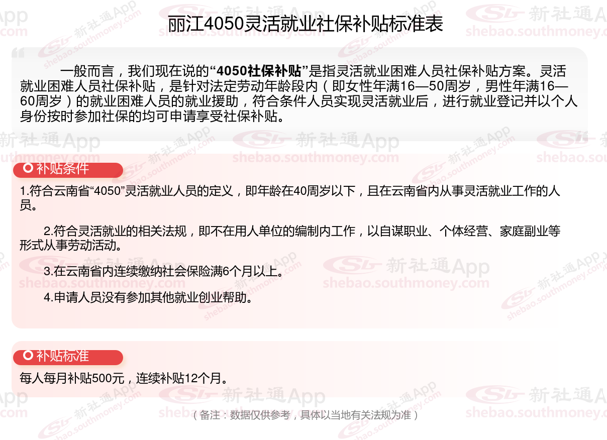 以上就是丽江4050灵活就业社保补贴的相关内容,欢迎关注新社通/下载新社通APP了解更多五险一金专业资讯。