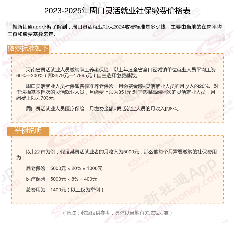 灵活就业社保缴费价格表来了!2024-2025年周口灵活就业人员社保需要缴费多少钱一个月?根据新社通app-社保缴费查询工具提供的最新数据如下: