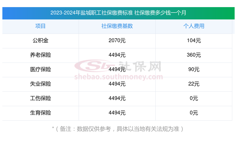 盐城缴费社保比例一览 社保公司和个人各交多少?下表是2024-2025年盐城社保费用明细参考,新社通app-社保缴费查询工具提供的最新数据如下: