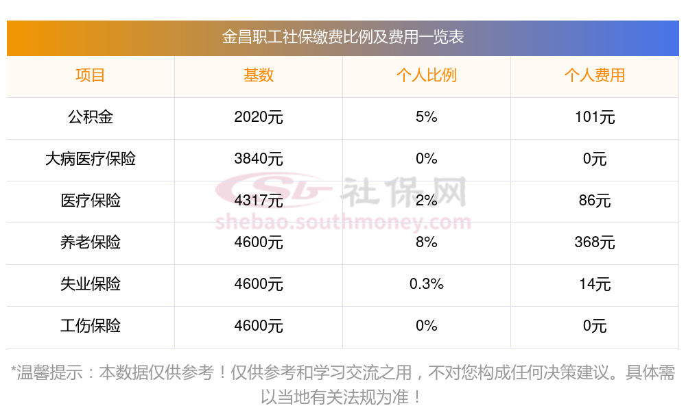 2025年金昌社保缴费多少钱?下表是2024-2025年金昌社保费用明细参考,新社通app-社保缴费查询工具提供的最新数据如下: