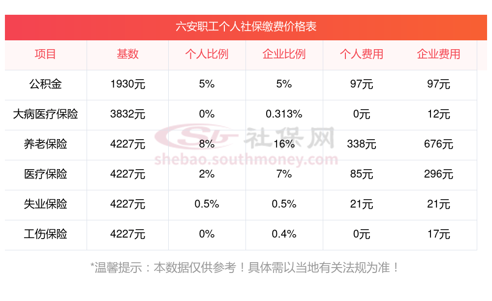 安徽社保个人怎么交费?安徽社保个人交多少钱?下表是2024-2025年六安社保费用明细参考,新社通app-社保缴费查询工具提供的最新数据如下:
