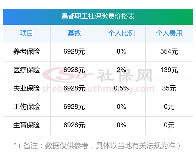 2025年昌都社保缴费多少钱?下表是2024-2025年昌都社保费用明细参考,新社通app-社保缴费查询工具提供的最新数据如下: