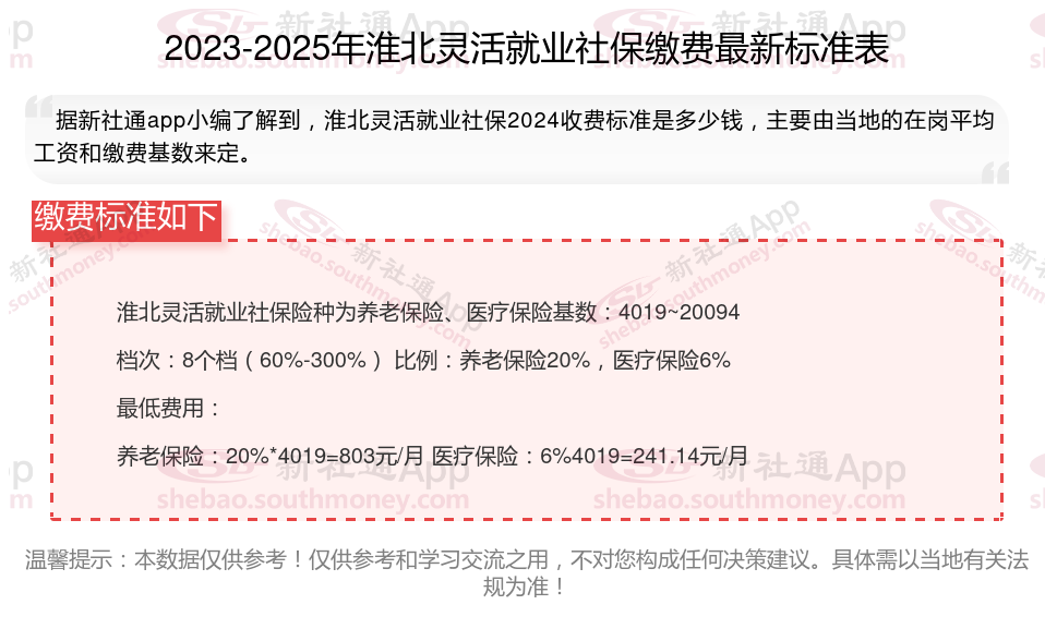 淮北灵活就业社保险种为养老保险、医疗保险基数:4019~20094