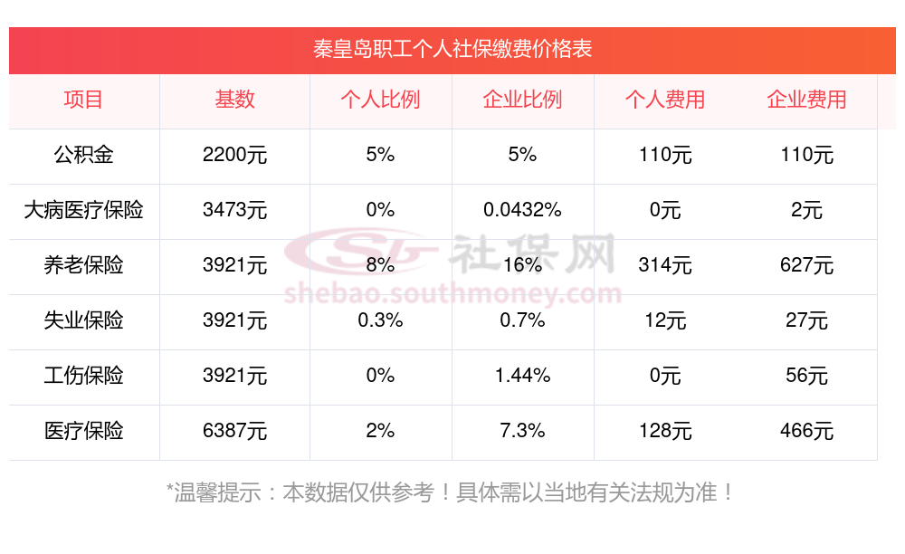 据新社通app显示,秦皇岛社保缴费基数2025最新标准如下: